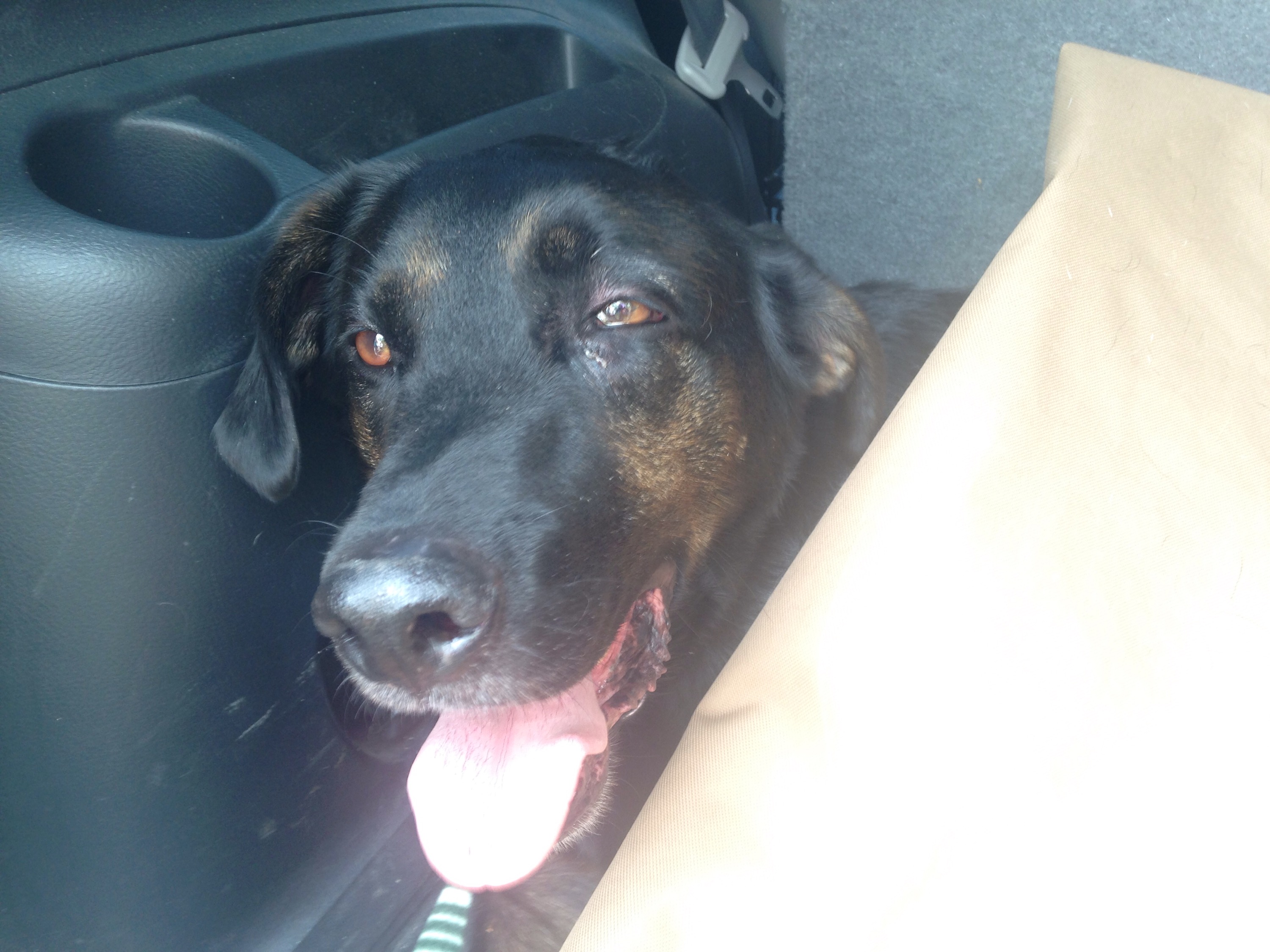 This is not one of those obnoxious “Look at this good deed that I did, I’m so sad that the rest of the world isn’t as nice as I am” posts. This is one of those “What the fuck kind of heartless asshole hits a dog and then leaves him lying on the side of the road” posts. This is a large dog, a hound. He has a badly injured front leg, injuries to his mouth, and possibly damage to his spine or internal organs. He was hit hard. The impact wasn’t like when you accidentally run over a snake because you thought it was a twig. This shit was deliberate and if you’re the one who hit him, you’re a deplorable human being.